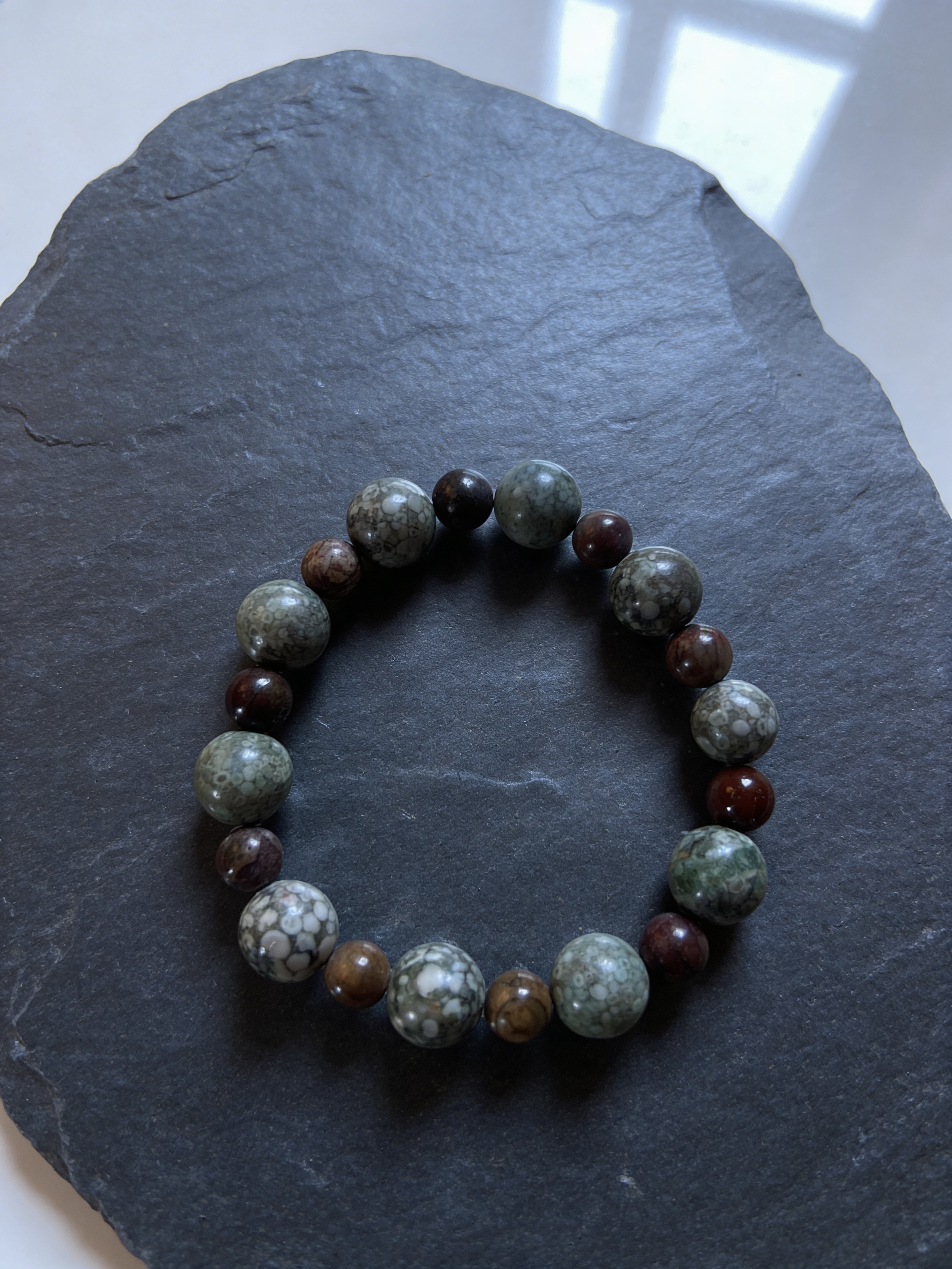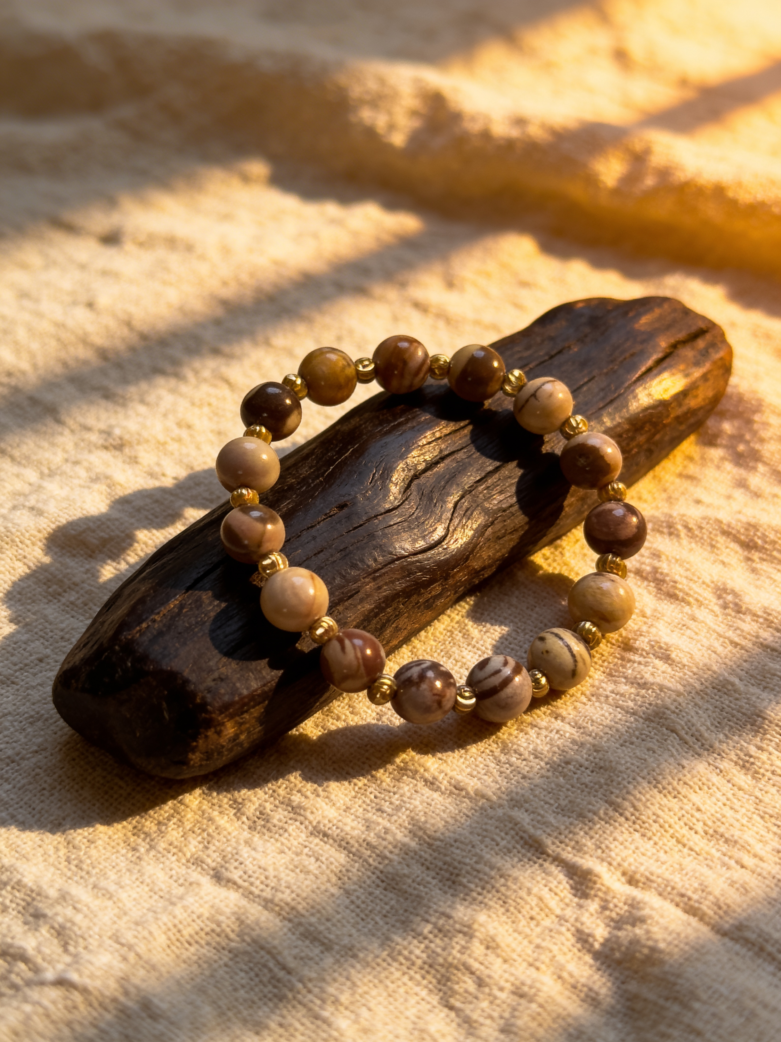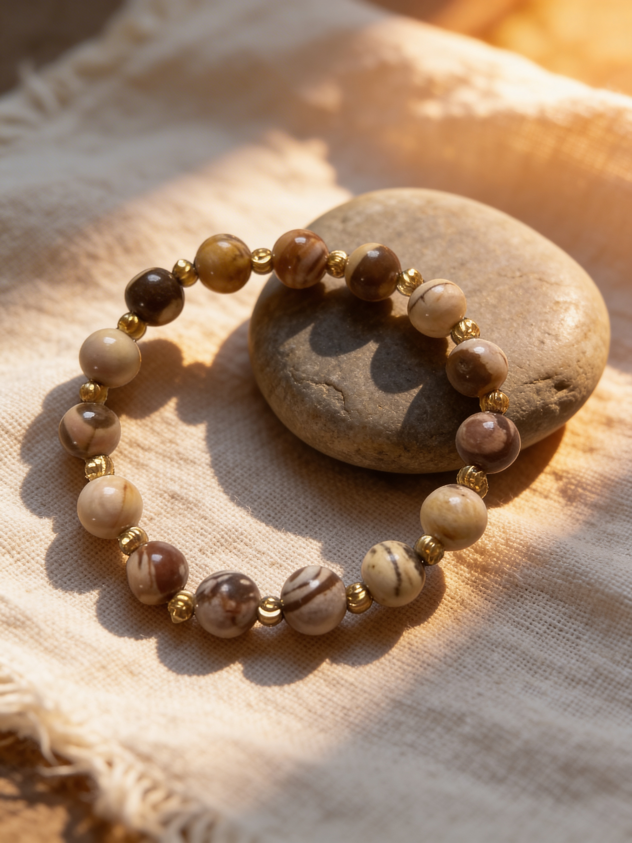 Its earthy tones bring a sense of stillness and connection, making it perfect for everyday wear or as a subtle statement of inner calm and confidence.