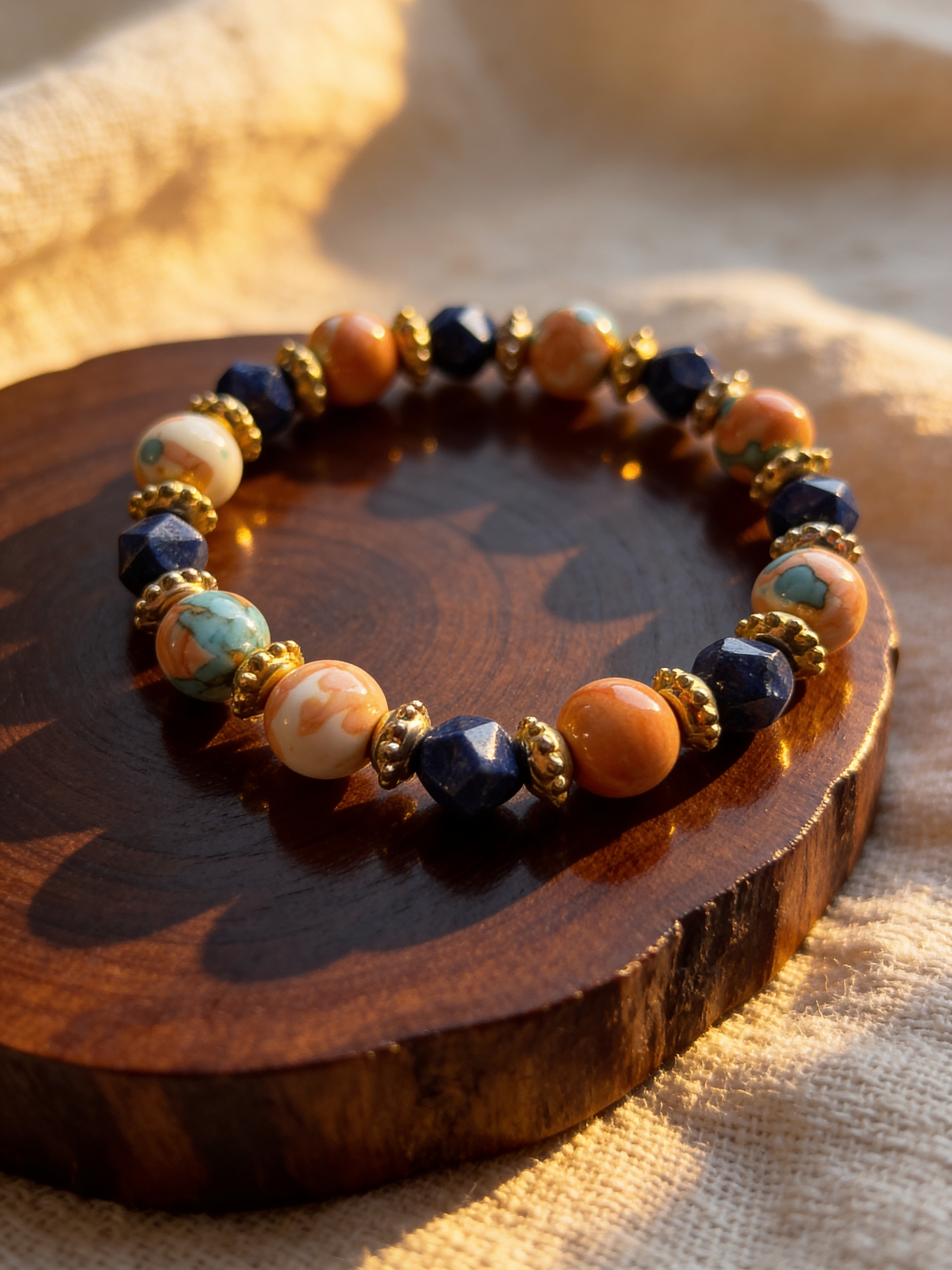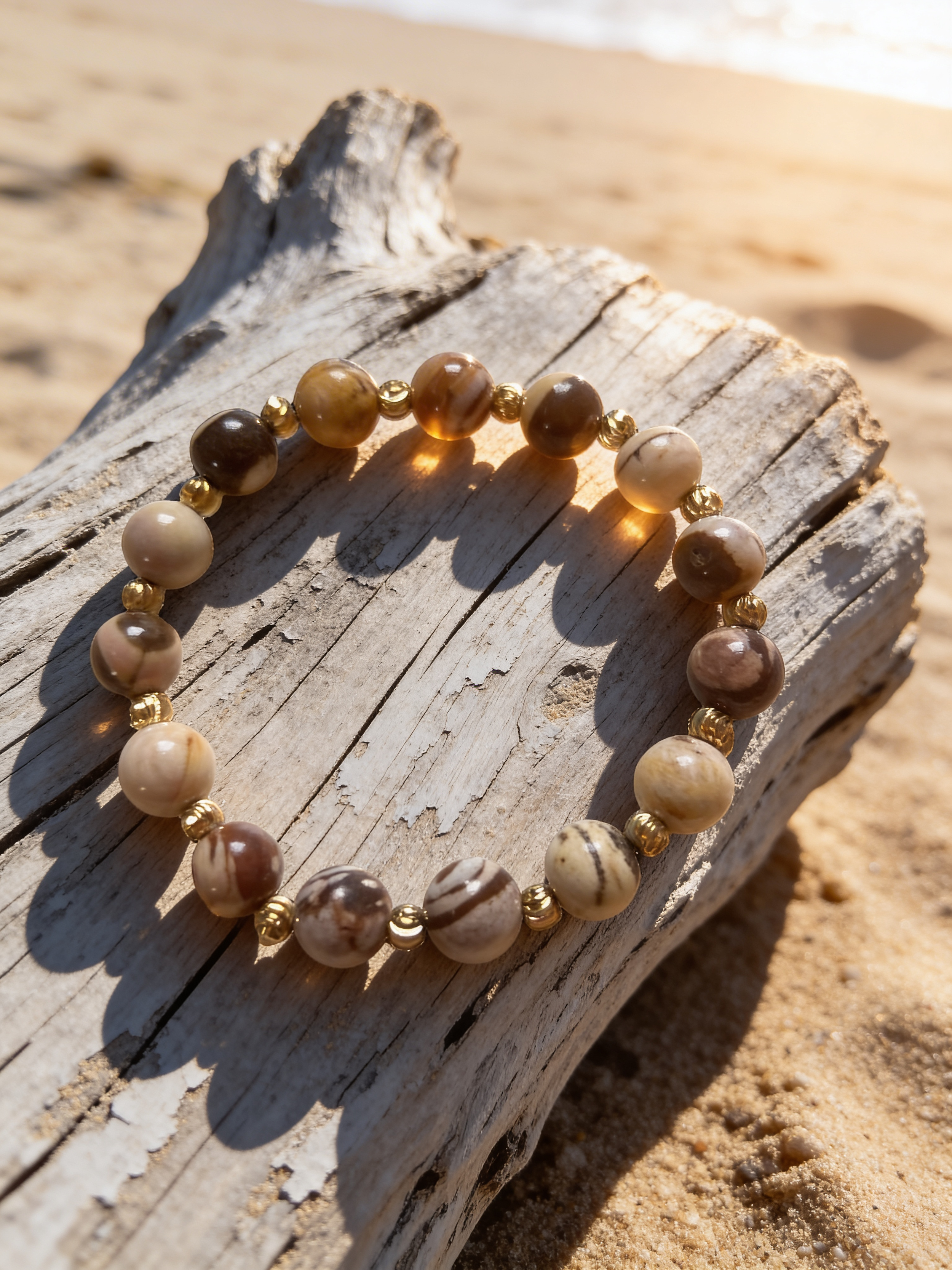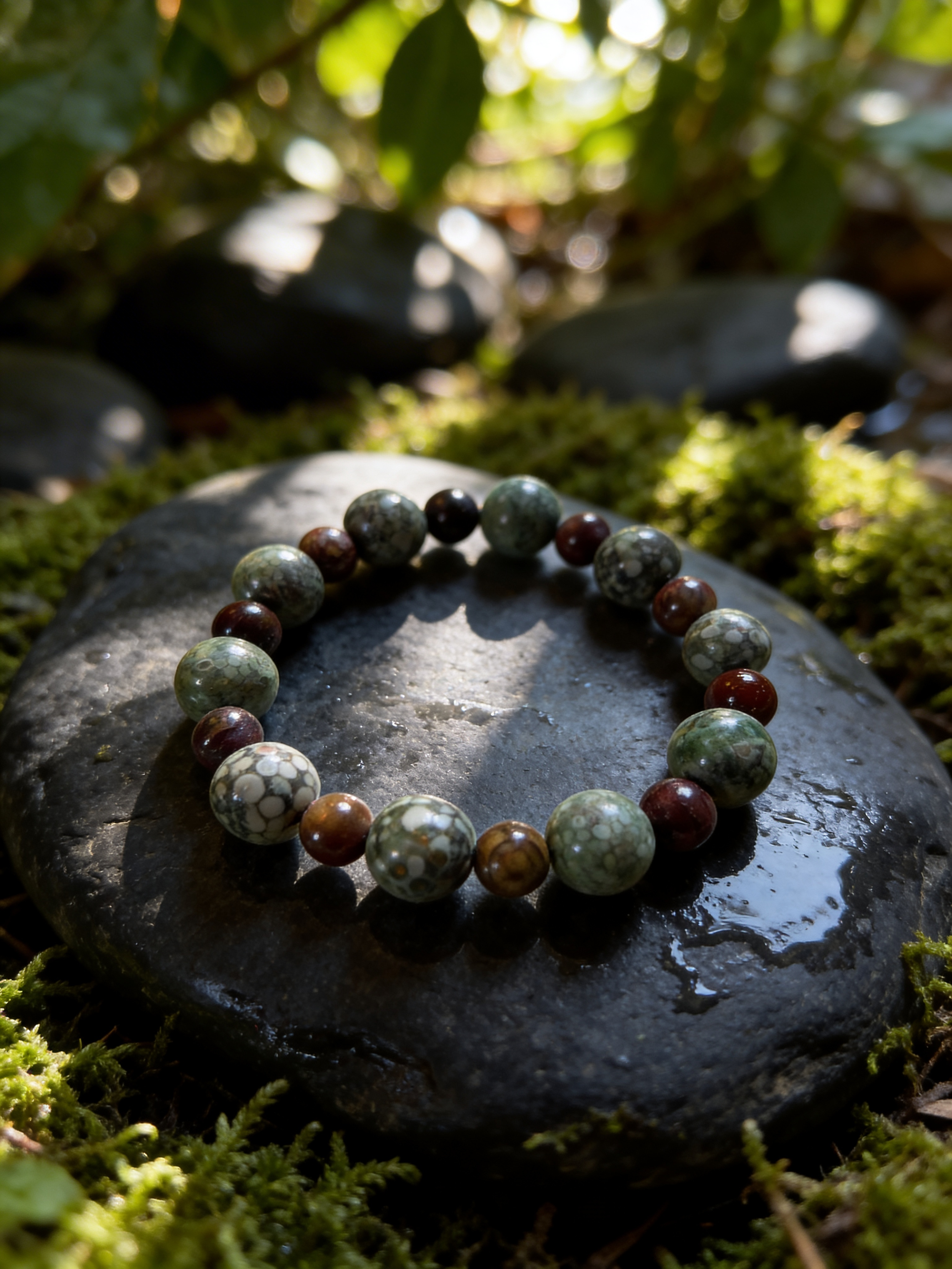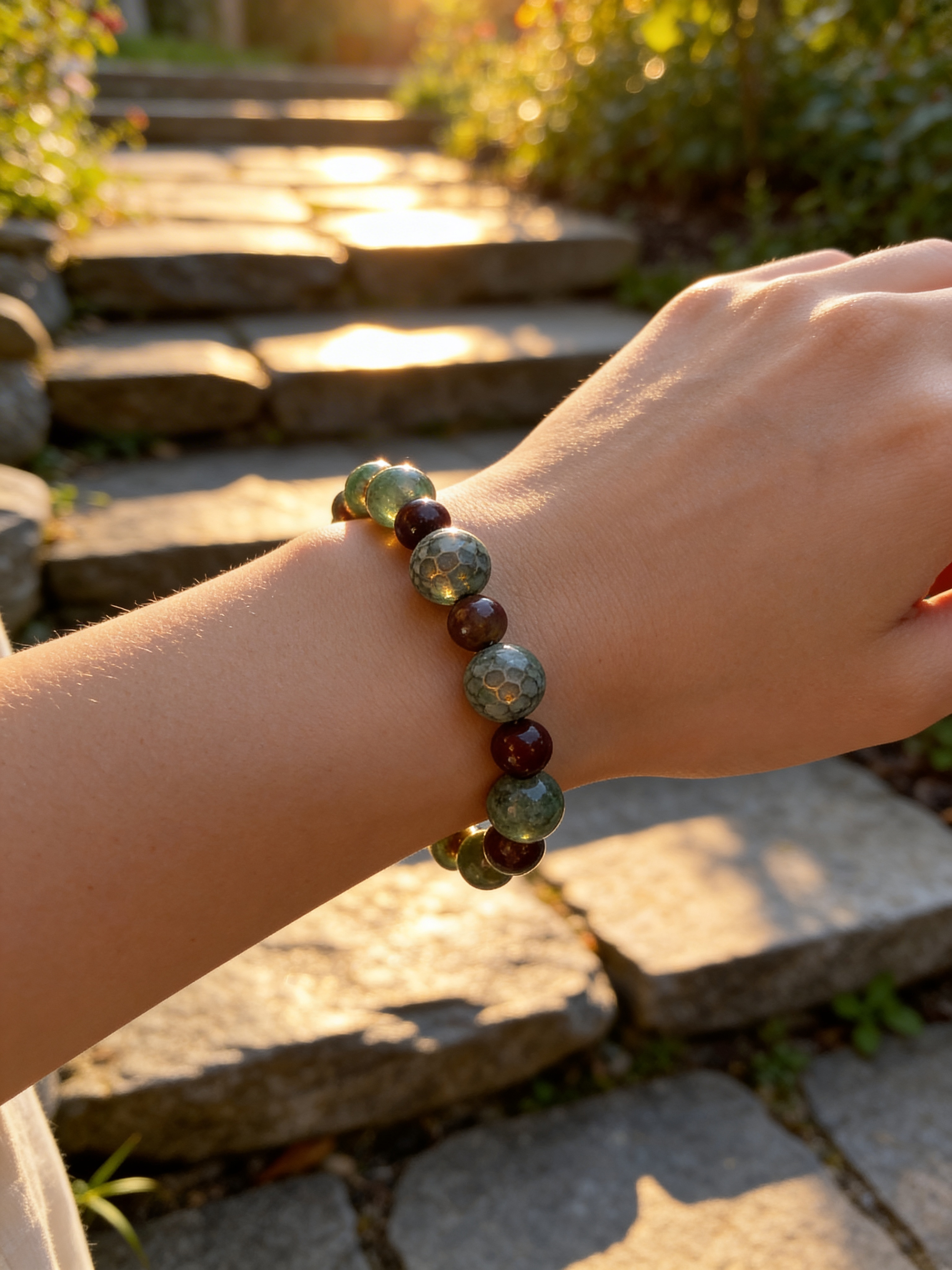 Its earthy tones bring a sense of stillness and connection, making it perfect for everyday wear or as a subtle statement of inner calm and confidence.