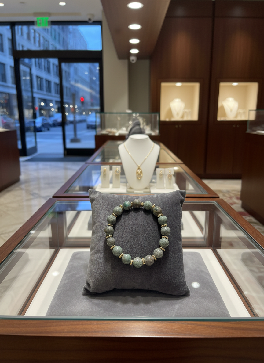 Vetta’s Creation presents the Olive Grove Harmony Bracelet — a calm and grounding piece inspired by nature’s quiet strength. Designed with soft olive-green beads and accented with warm gold spacers, this bracelet reflects balance, peace, and effortless beauty.