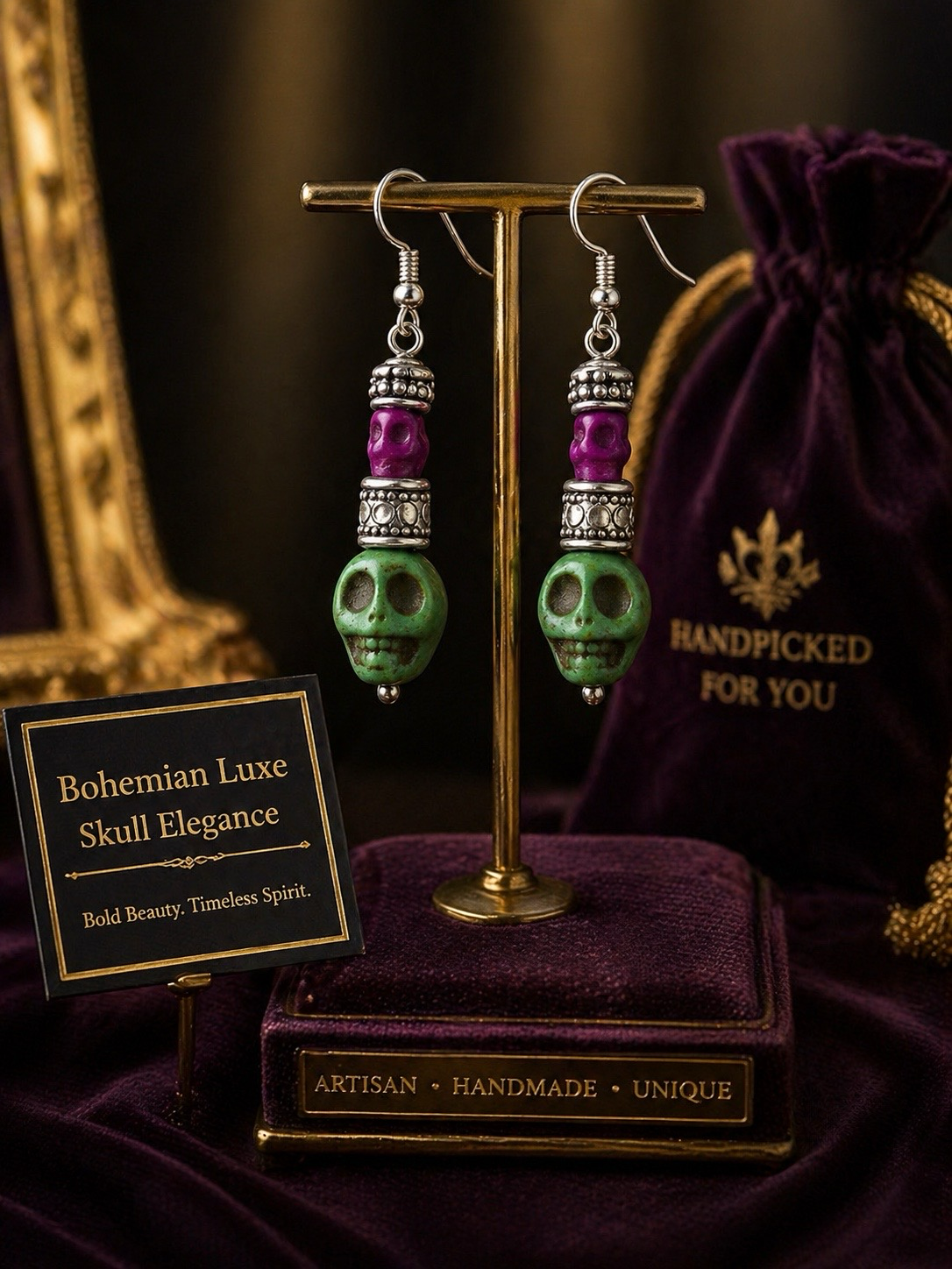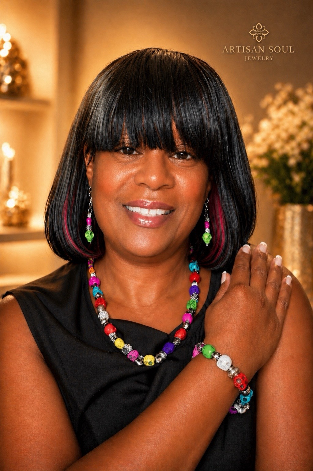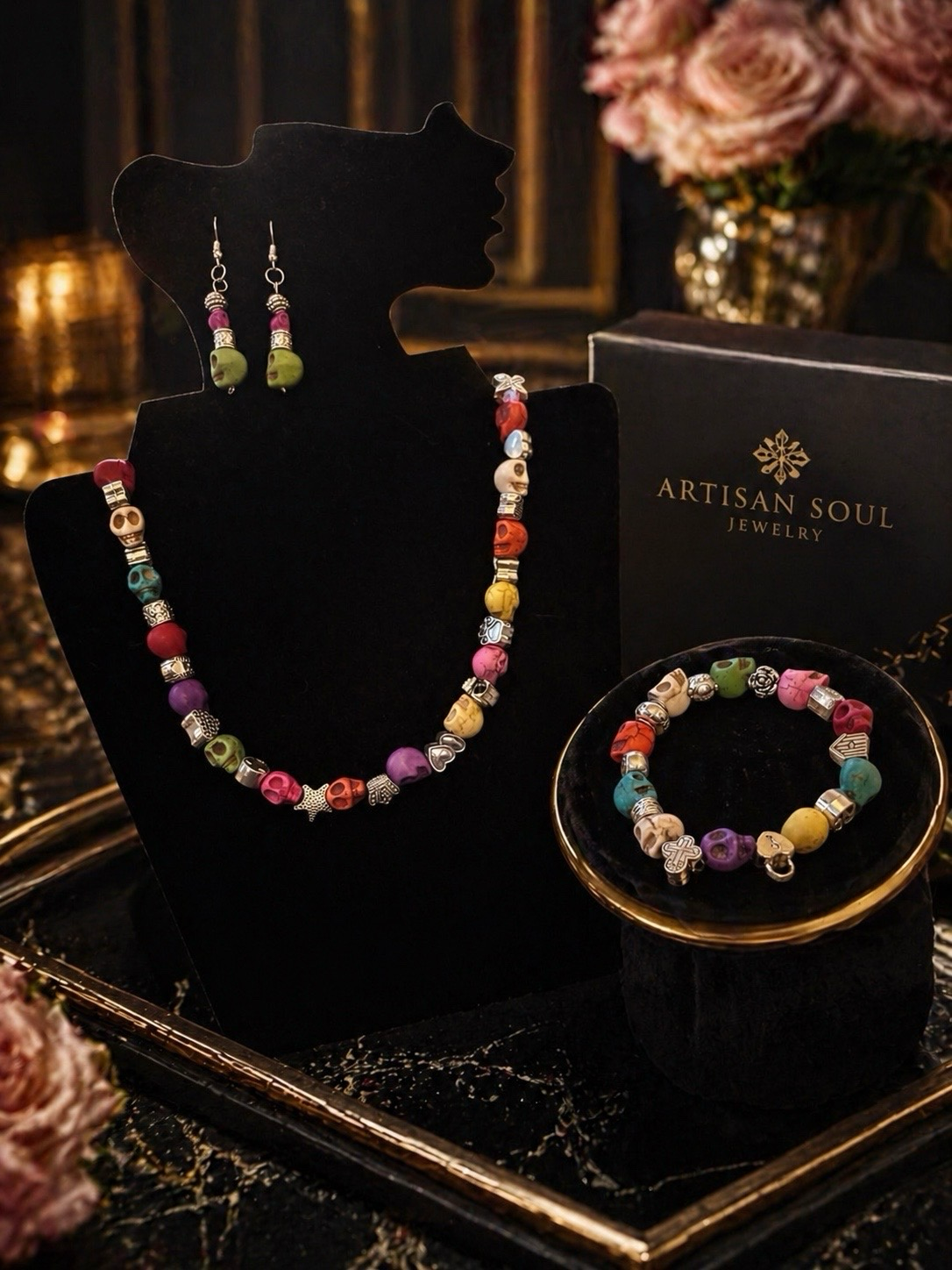 Bold Beauty. Fearless Spirit.Step into bold expression with the Soul Radiance Skull Set, a handcrafted artisan piece designed to celebrate color, individuality, and spirit.