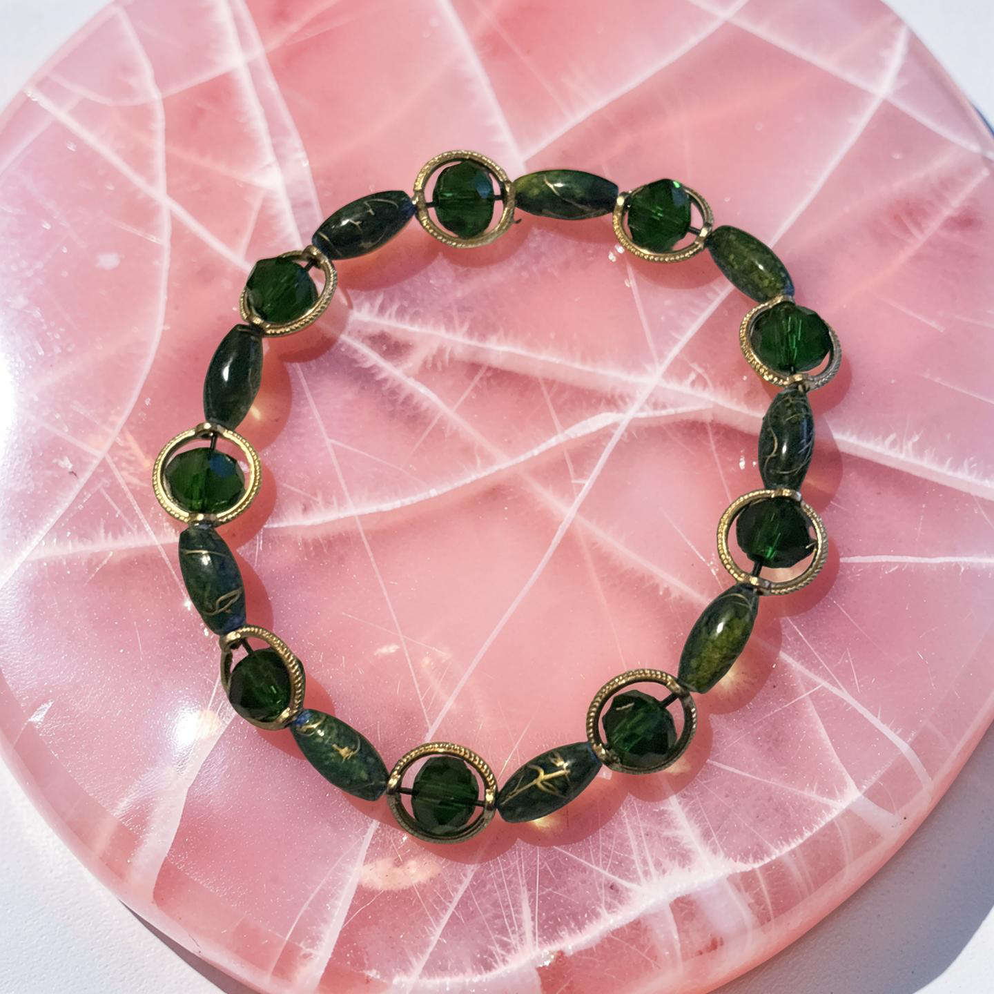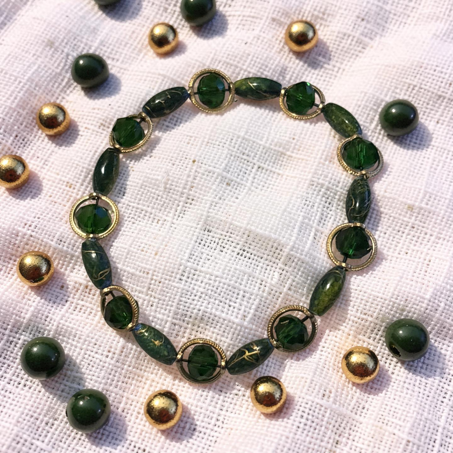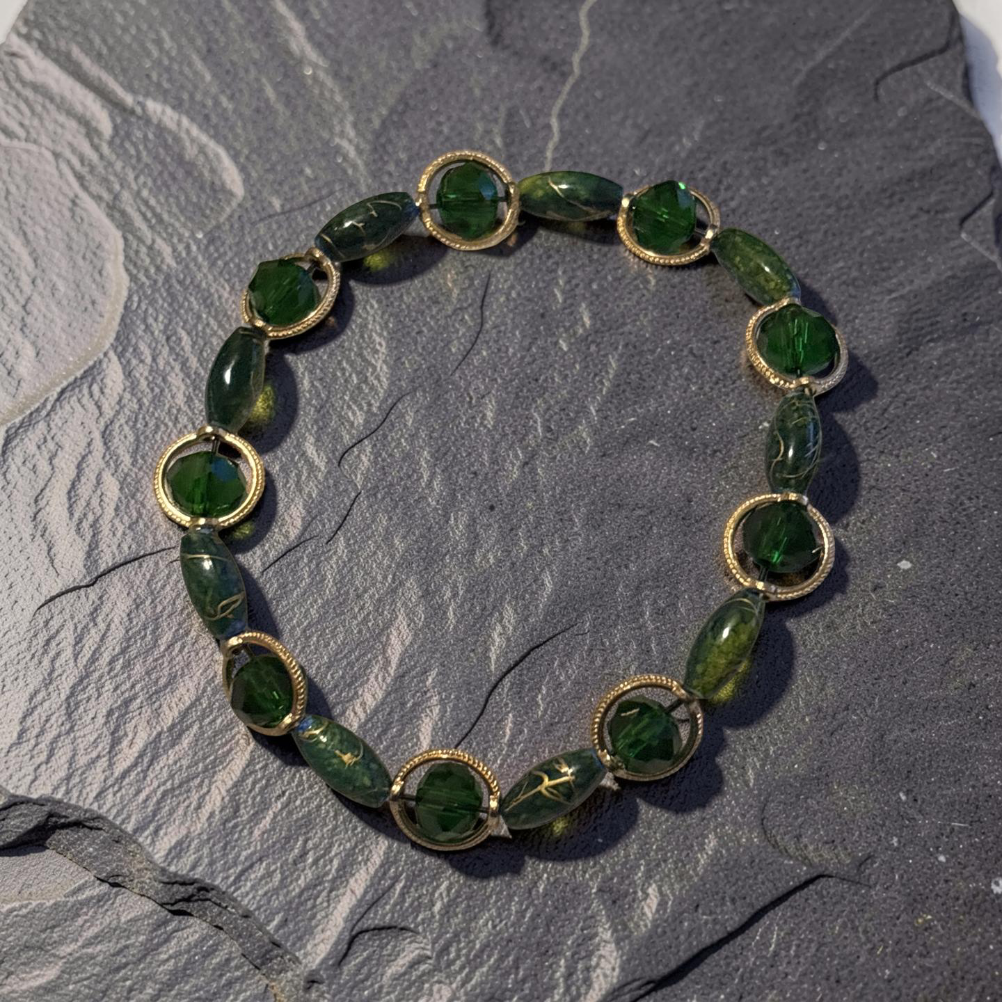 Elegant and radiant, the Emerald Glow Stretch Bracelet features rich green beads paired with warm gold accents for a timeless boutique look. Designed to stretch comfortably for everyday wear, this handcrafted piece adds a soft glow of color and sophistication to any outfit. Perfect for stacking or wearing alone as a subtle statement.