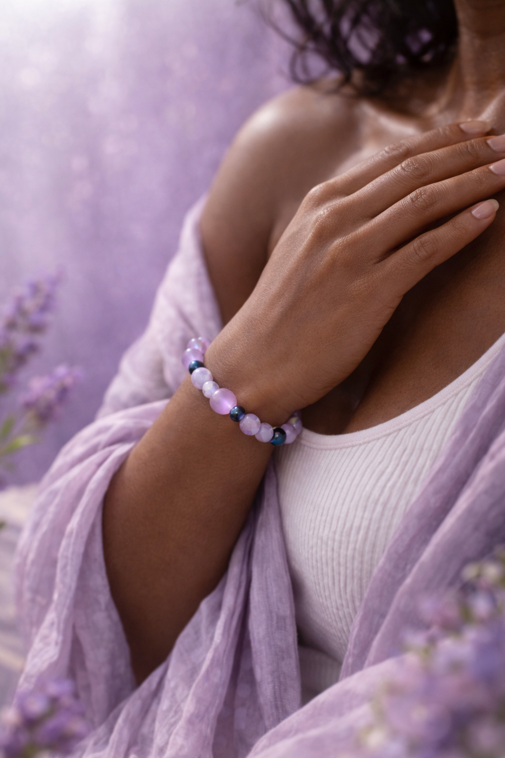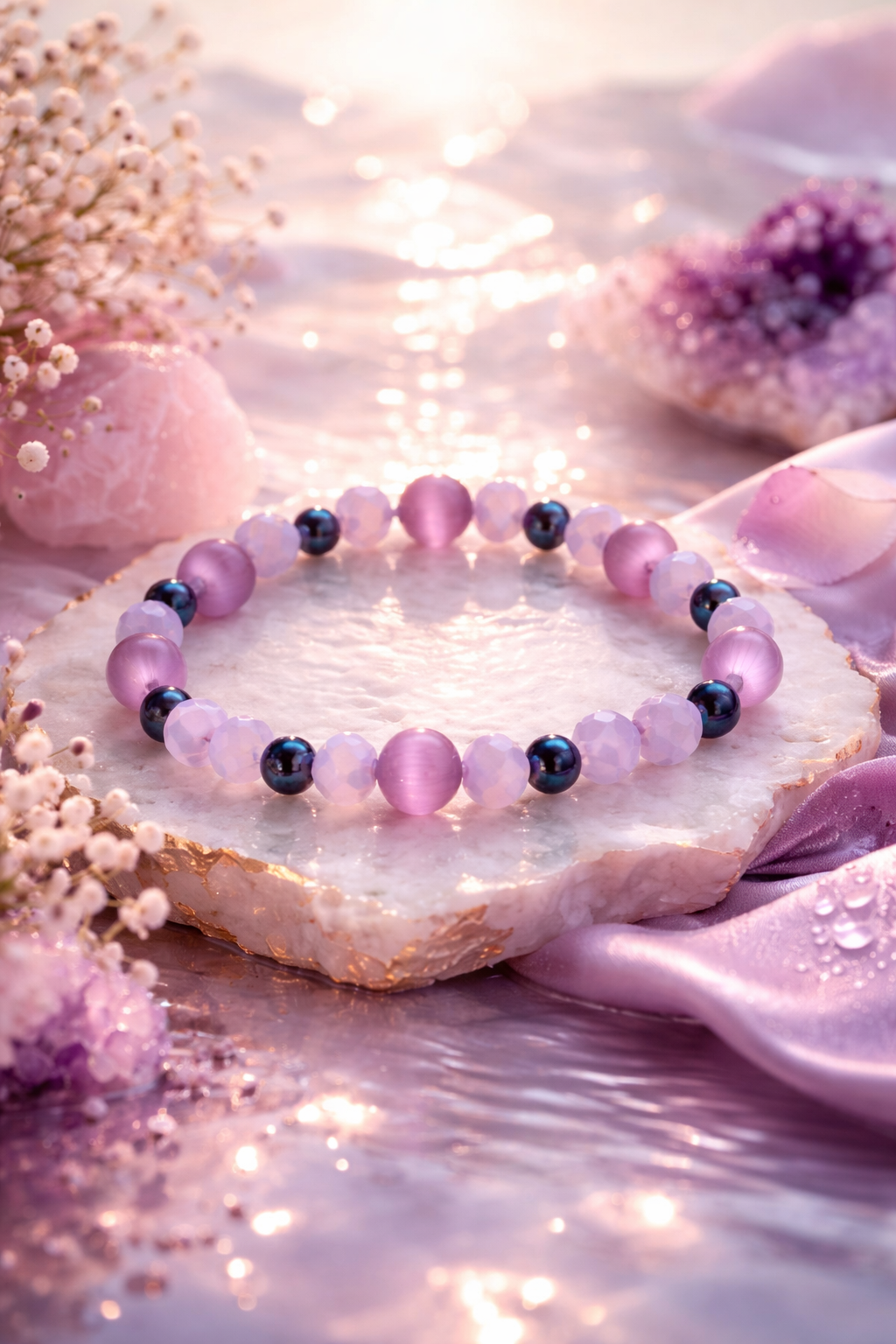 Delicate and calming, the Luna Petal Bracelet is designed to embody softness, emotional balance, and quiet strength.