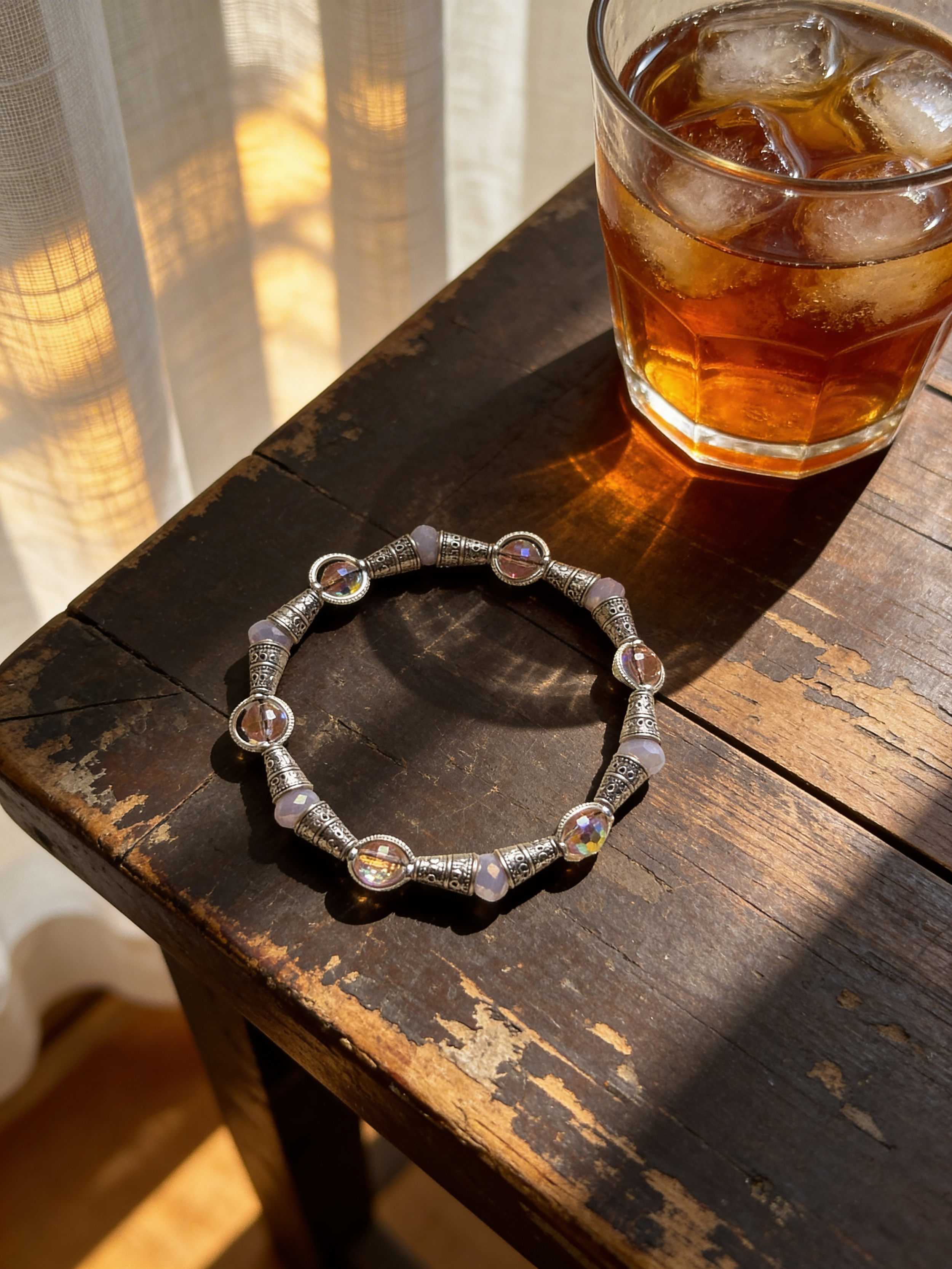 Each bracelet is handcrafted with care, blending smooth beads and subtle shimmer to create a look that is both earthy and refined. Whether worn alone for a touch of simplicity or stacked with other favorites, Desert Pearl brings a gentle glow to any outfit.