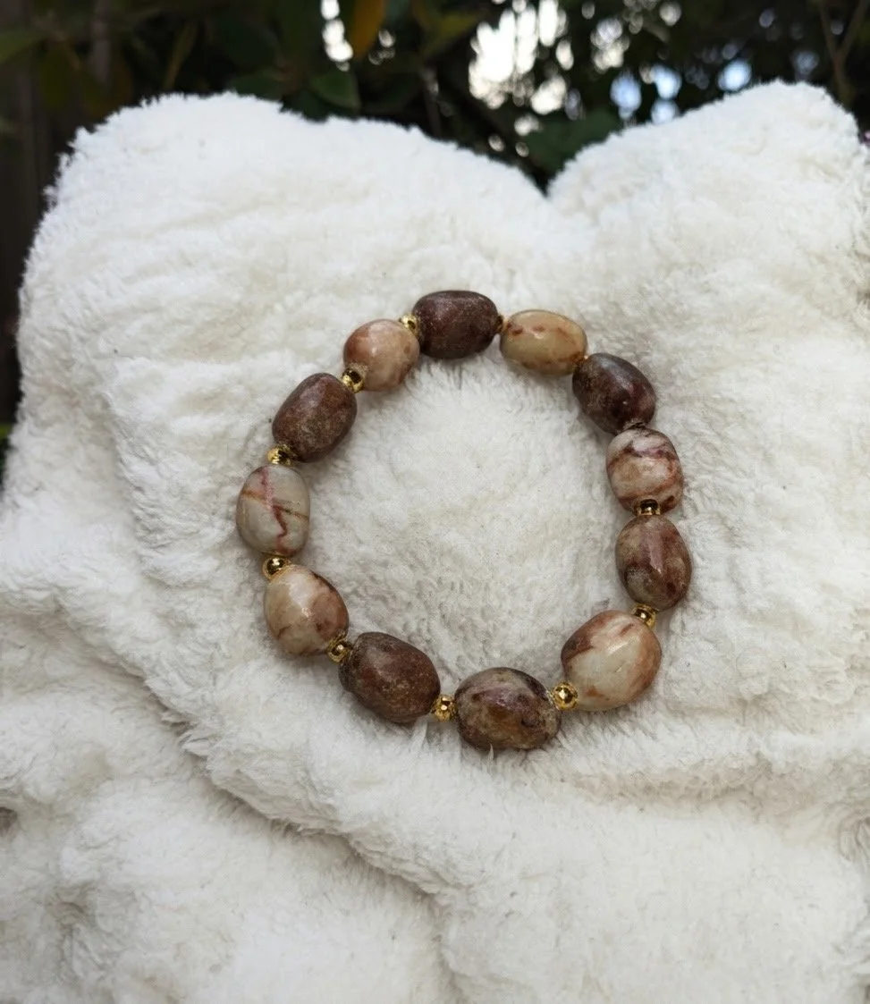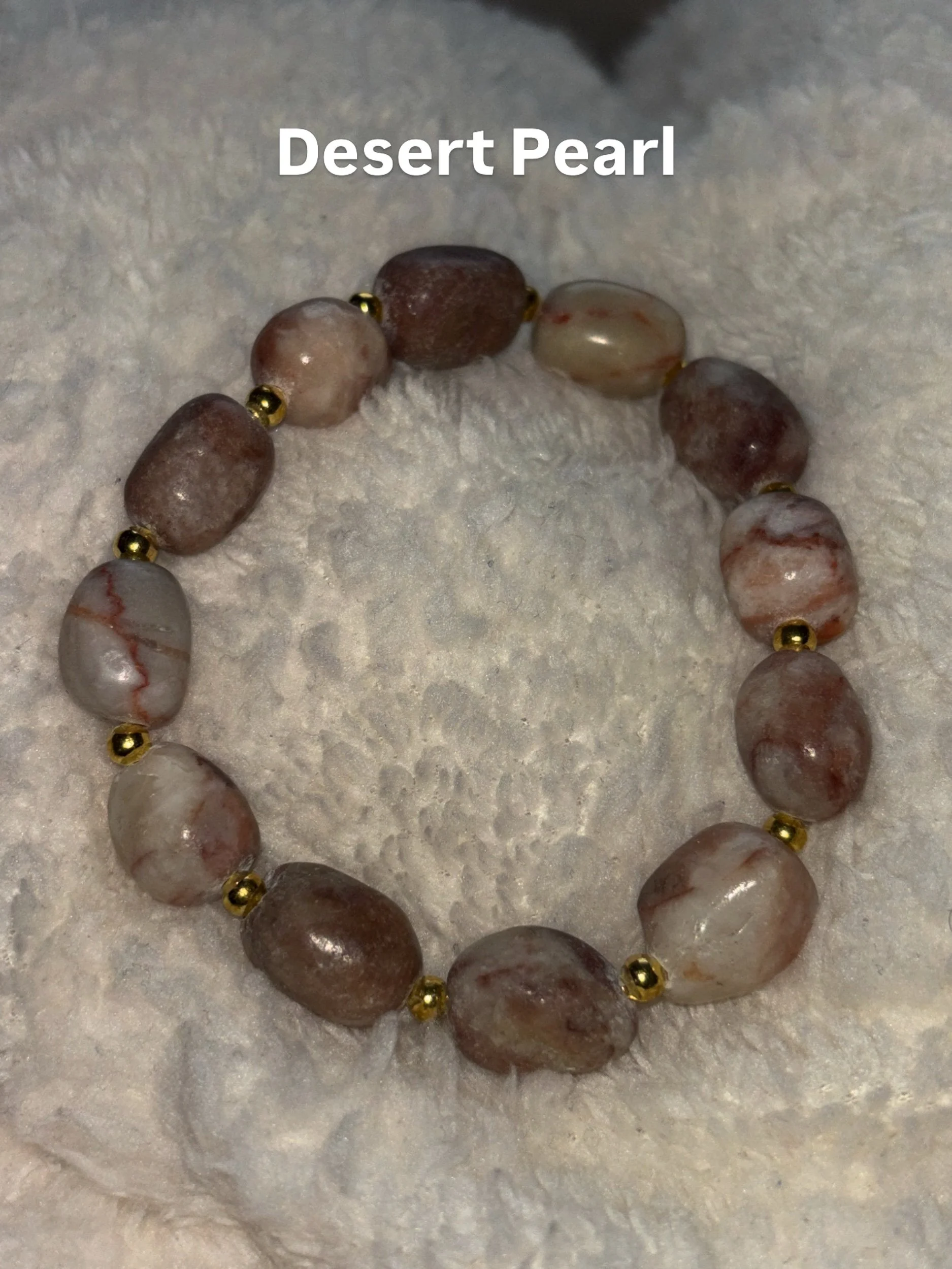 Soft, radiant, and effortlessly elegant, the Desert Pearl Bracelet captures the quiet beauty of natural tones and luminous pearls. Designed with warm neutral hues and delicate pearl accents, this piece reflects a sense of calm, grace, and timeless style.