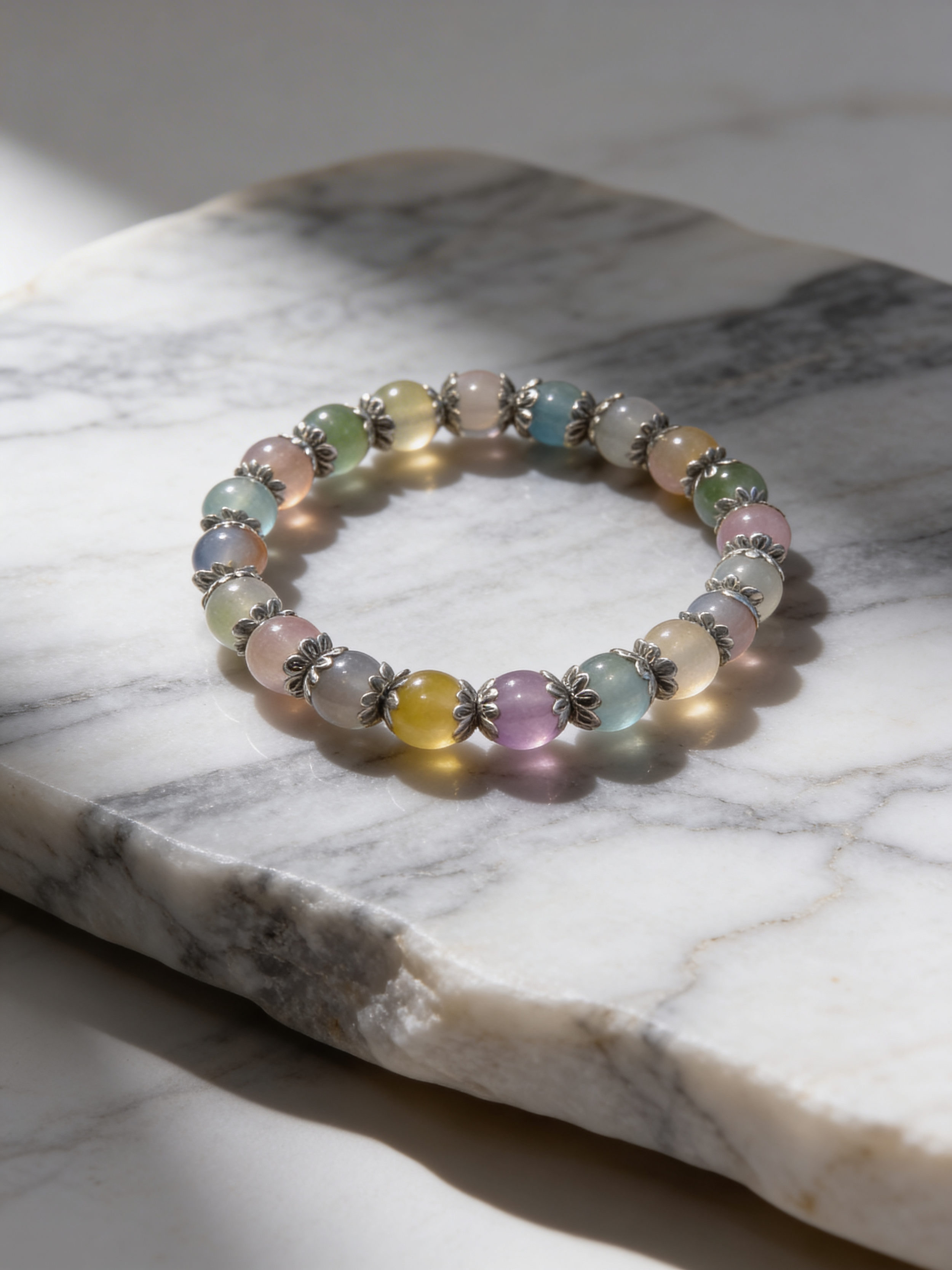 Step into soft color and gentle beauty with the Pastel Garden Stretch Bracelet. Designed with dreamy pastel-toned beads and elegant silver accents, this handcrafted piece brings a peaceful garden-inspired feel to any jewelry stack. Lightweight, comfortable, and easy to wear, it’s perfect for everyday styling or layering with your favorite Vetta’s Creation bracelets. A delicate boutique statement that feels fresh, feminine, and naturally inspired.