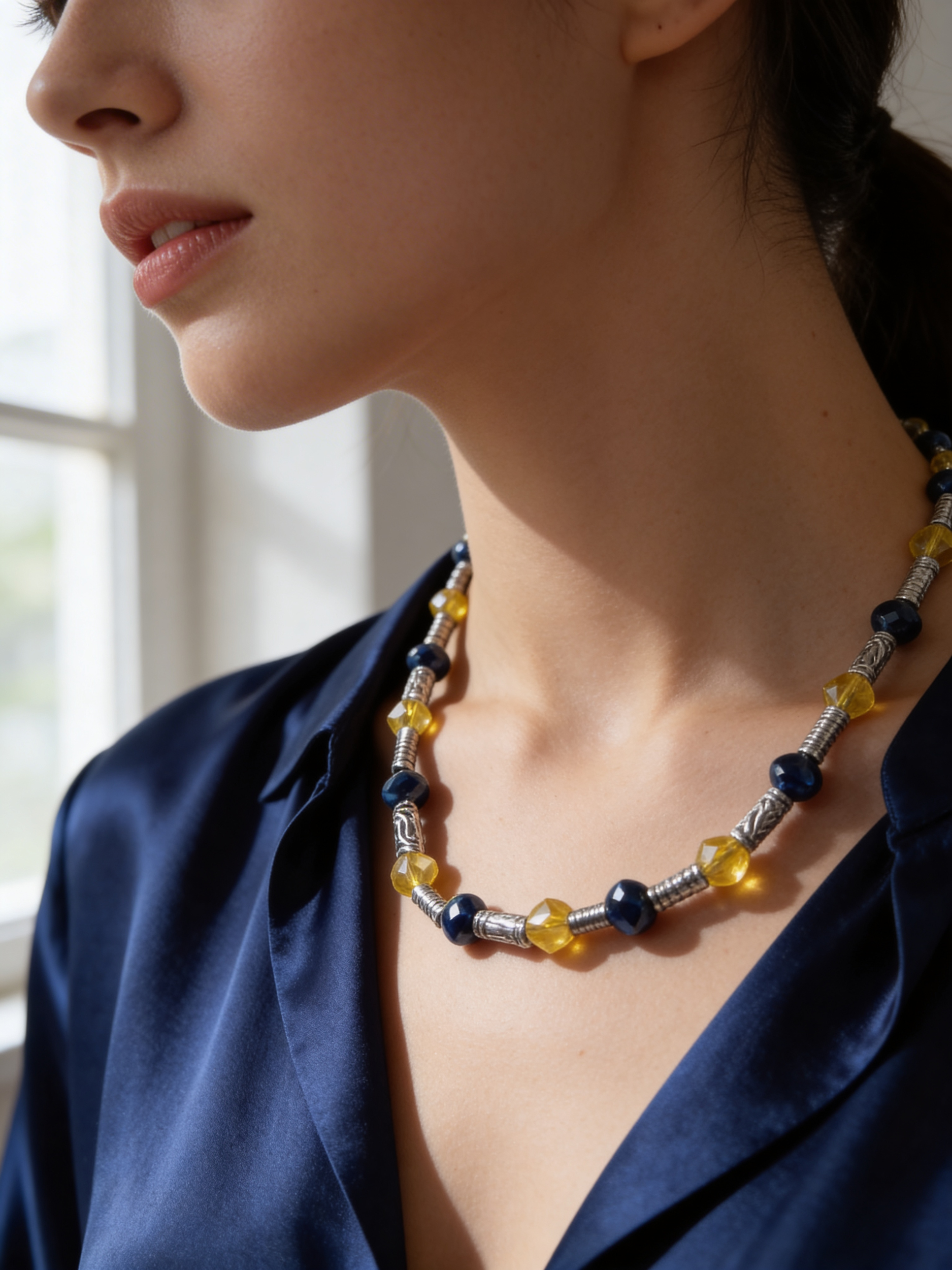 Lightweight and comfortable to wear, this piece pairs beautifully with everyday outfits, neutral tones, or layered jewelry looks. Its simple rhythm of beads gives the necklace a graceful flow that complements many styles.