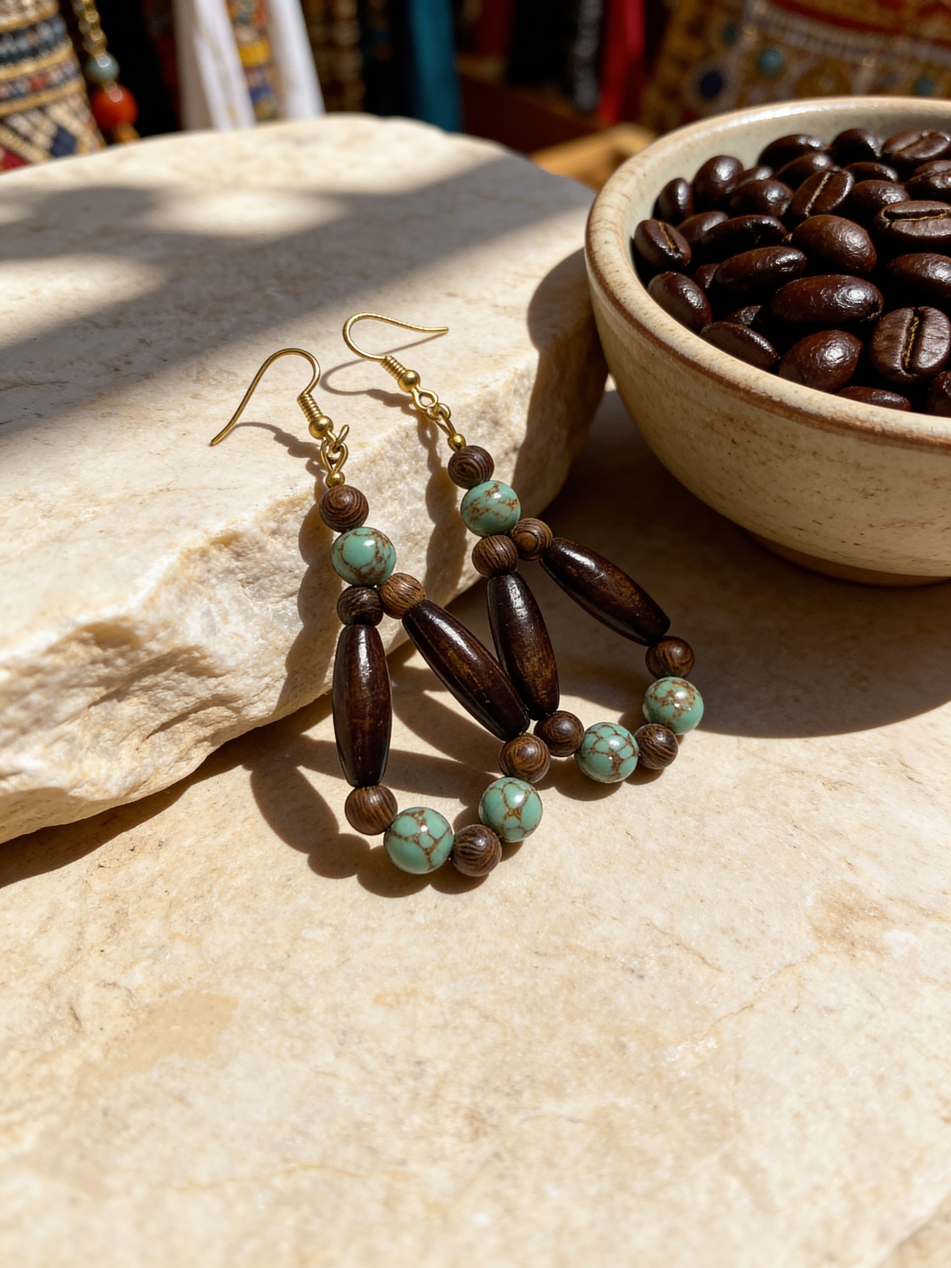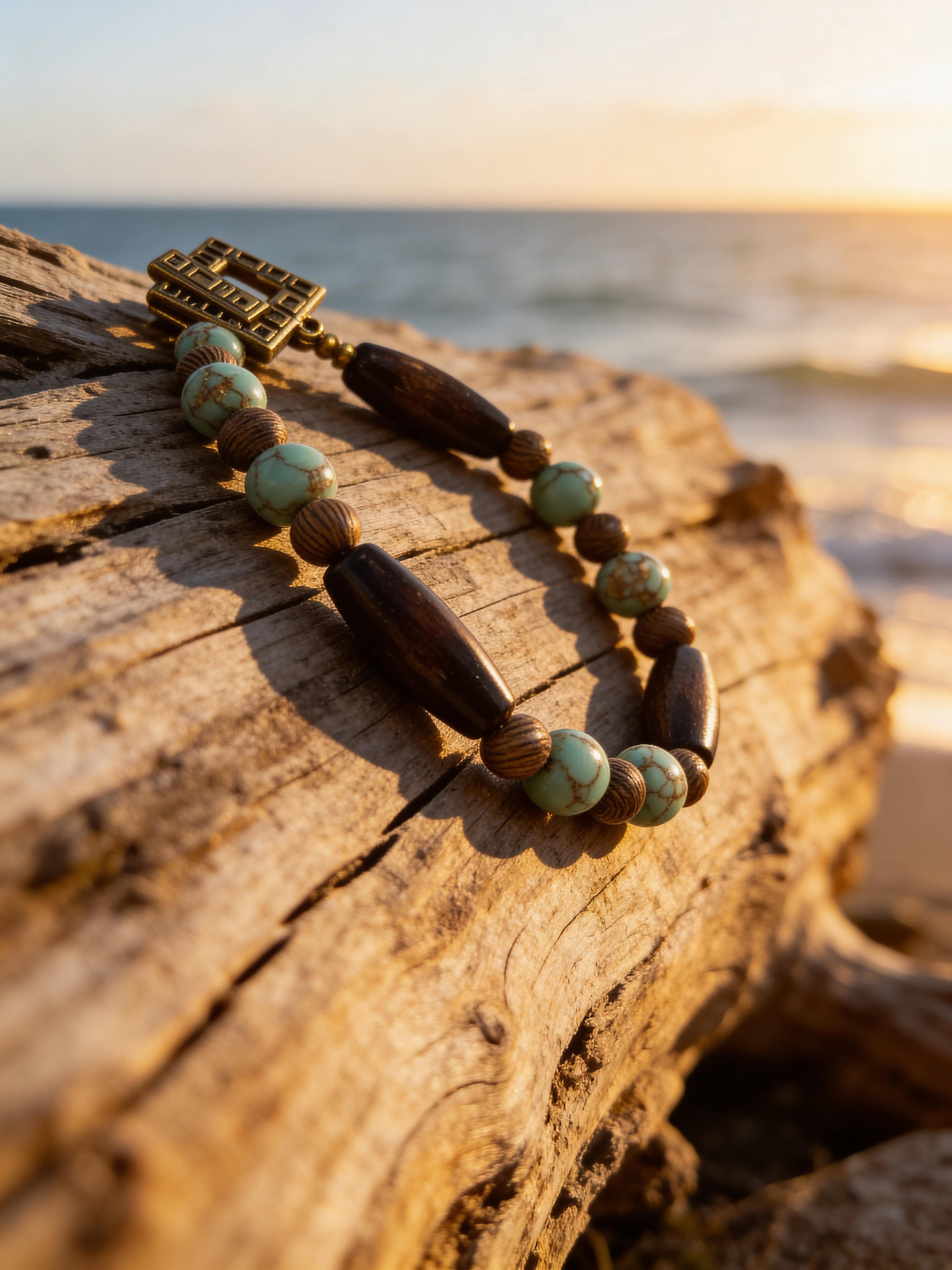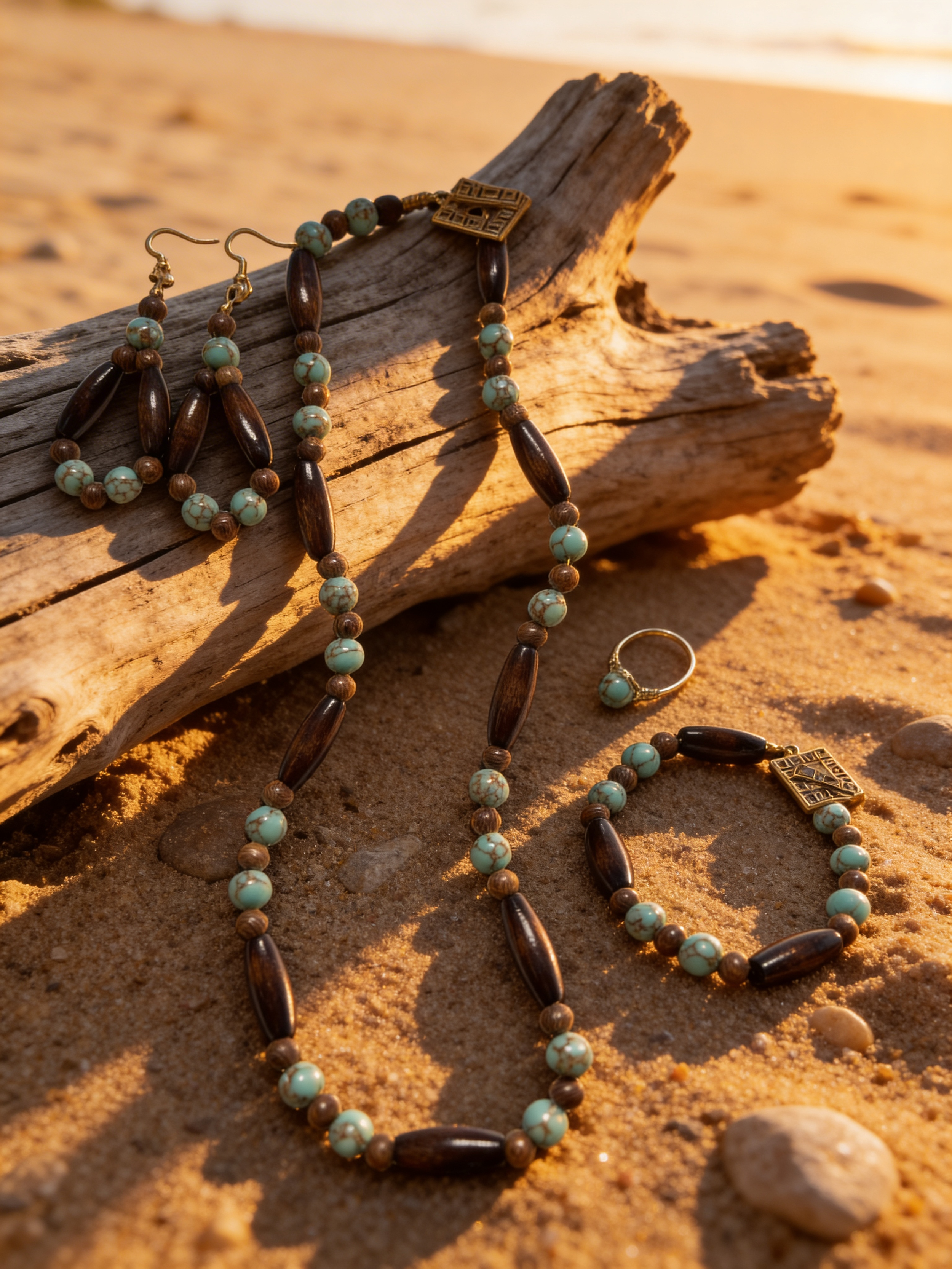 This handcrafted Turquoise Coast Harmony Jewelry Set from Vetta’s Creation brings together natural textures, earthy beauty, and timeless design. The set features turquoise-style beads paired with rich wood tones and gold accents, creating a warm and balanced look inspired by coastal landscapes and natural elements.